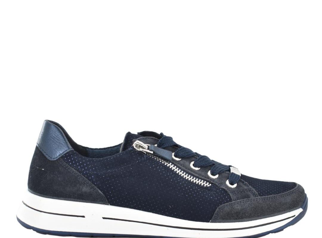 Deze donkerblauwe Ara sneaker is gemaakt van heerlijk zacht suède. De badstof voering en het memory foam voetbed zorgen voor een prettige ervaring bij elke stap. Geschikt voor wijdte H en voorzien van een uitneembaar voetbed. Lichtgewicht en ideaal voor dagelijks gebruik.