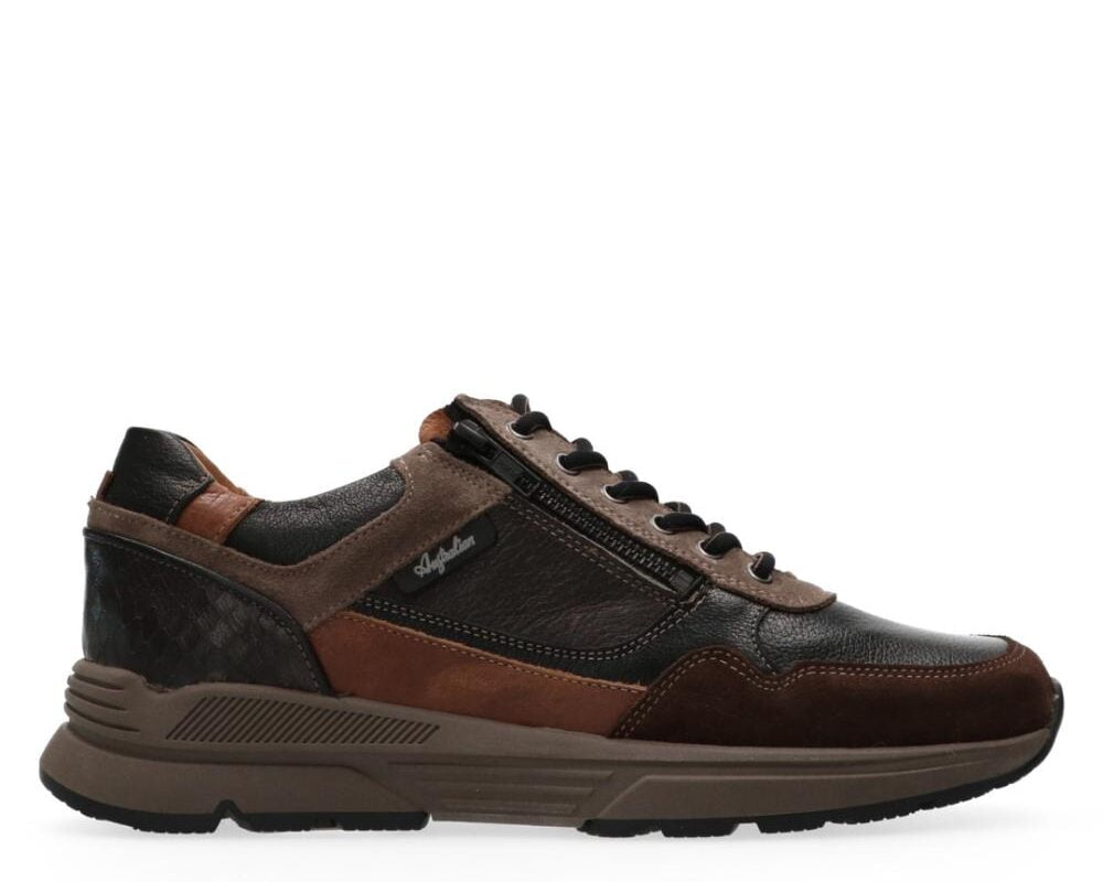 Deze donkerbruine sneaker van Australian Footwear is ontworpen op wijdte H, wat extra ruimte en comfort biedt voor bredere voeten. Het stretchleer aan de bovenkant van de neus van de schoen zorgt voor een comfortabele pasvorm en voelt heerlijk aan de voet. De sneaker is voorzien van een stevig voetbed dat uitstekende ondersteuning biedt. Het uitneembare voetbed kan eenvoudig worden vervangen door uw eigen steunzolen indien nodig. De rits aan de zijkant maakt het gemakkelijk om de sneaker aan- en uit te trekken. De leren voering draagt bij aan ademend vermogen en luxe comfort, ideaal voor dagelijks gebruik.