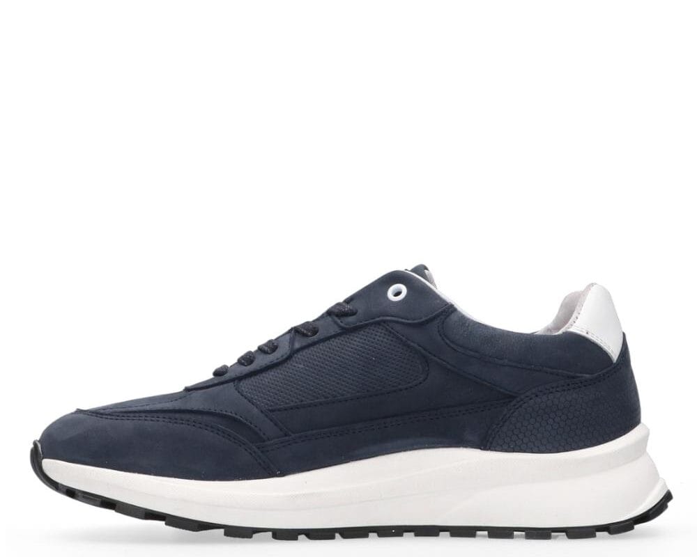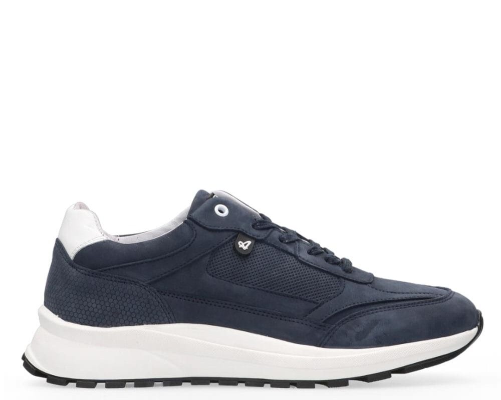 De Australian Footwear Mazzerato sneaker in donkerblauw nubuck is een hippe en stevige herenschoen met een sportieve uitstraling. De stevige zool biedt grip en ondersteuning, ideaal voor dagelijks gebruik.