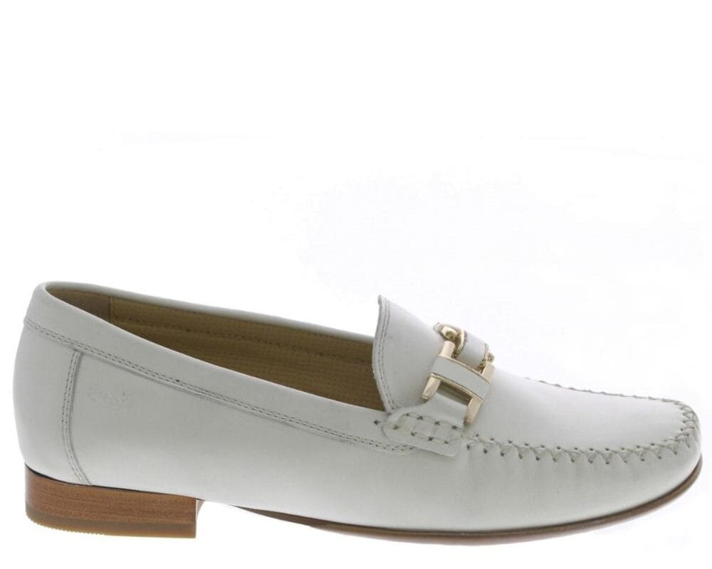 Deze witte mocassin van Sioux is vervaardigd van ultra zacht leer en omhult uw voeten in luxe en comfort. Het subtiele gespje over de wreef voegt een vleugje verfijning toe aan het klassieke ontwerp. De leren voering biedt een ademend comfort. Het voetbed is ontworpen met zorgvuldige aandacht voor ondersteuning en zachtheid, waardoor elke stap een genot is.