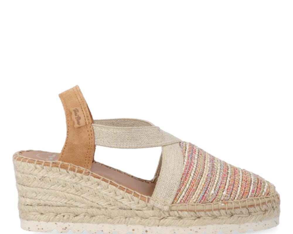 Deze espadrille van Toni Pons heeft een zomerse uitstraling dankzij het multicolor geweven materiaal en de klassieke sleehak van jute. De elastieken bandjes over de wreef zorgen voor een prettige aansluiting rond de voet.