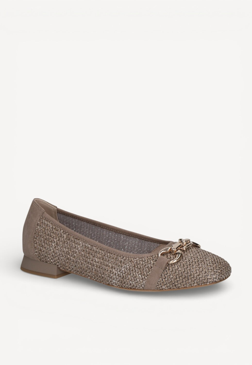 - Het gevlochten materiaal geeft de ballerina een stijlvolle, zomerse uitstraling