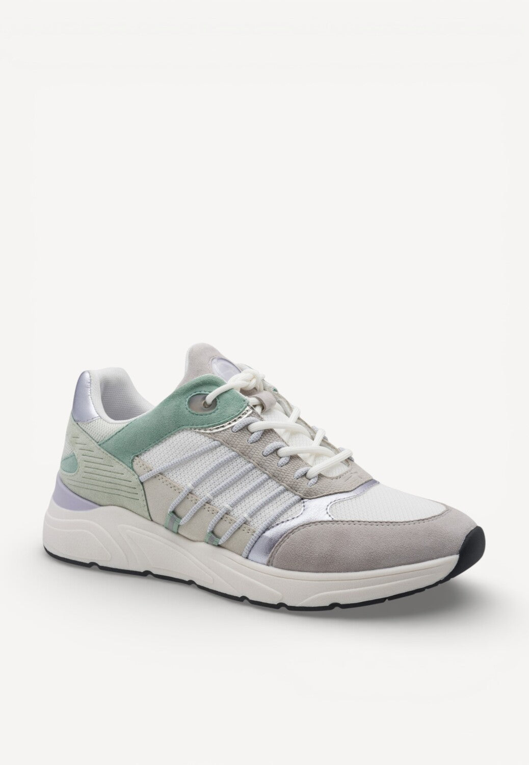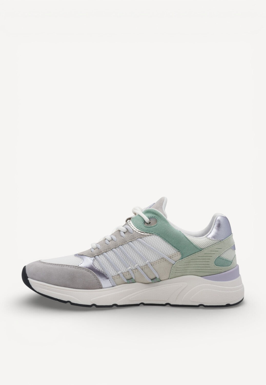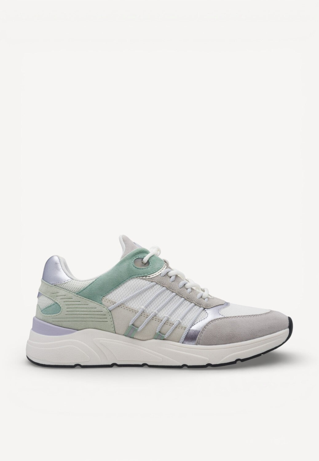 - Gemaakt van een suède combi: een mix van suède, mesh en details in metallic, wat zorgt voor een luchtig en stijlvol geheel.