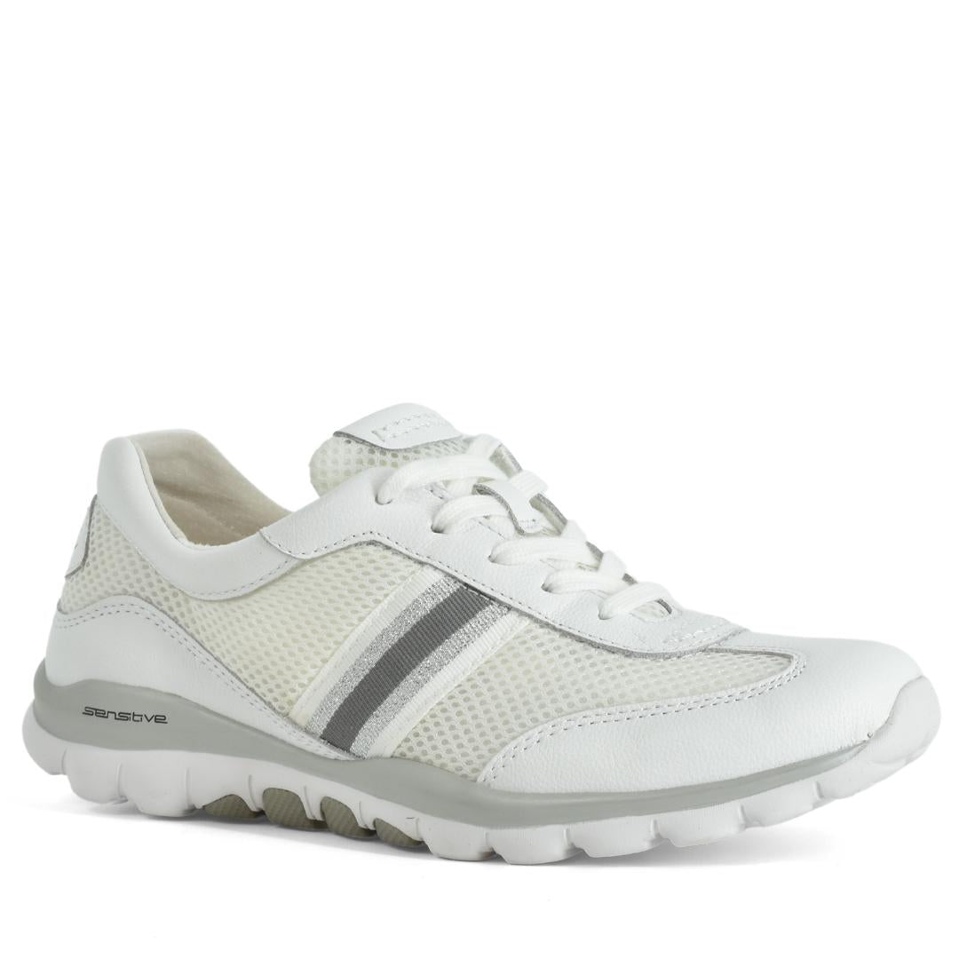 Deze Gabor Rollingsoft 26.966.50 sneaker bevordert de afwikkeling van uw voet door het ingebouwde afwikkelmechanisme. De witte kleur is gemakkelijk te combineren. De sneakers zijn zeer licht van gewicht waardoor u moeiteloos kilometers kunt lopen. Het voetbed van de sneaker biedt de ondersteuning die de voeten nodig hebben en is verwisselbaar zodat u deze Gabor Rollingsoft sneaker ook met steunzolen kunt dragen.