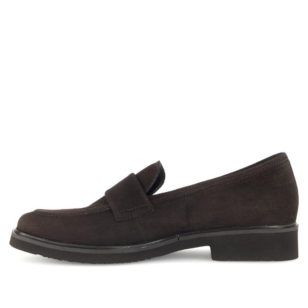 Gabor instapper in een prachtige donkerbruine kleur van hoogwaardig suède. Deze instapper is gemaakt op wijdte F. De voering is van zacht leer voor ultiem comfort. De lichtgewicht zool zorgt voor moeiteloos lopen. Perfect voor modebewuste vrouwen die stijl en comfort zoeken.
