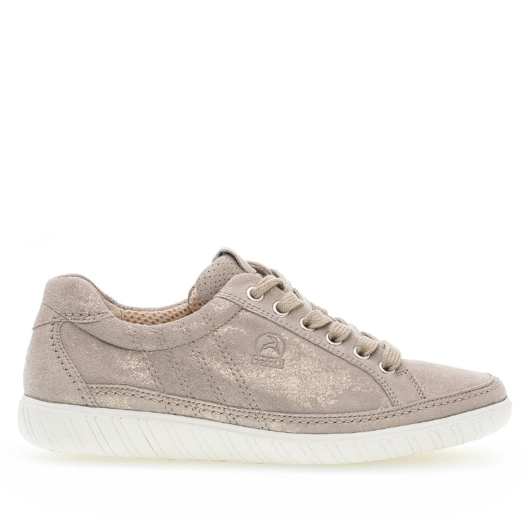 Deze Gabor sneaker 26.458.95 is gemaakt met het oog op een comfortabele pasvorm, zodat je hem de hele dag kunt dragen! Het hoogwaardige leer zorgt voor een langdurig comfort en de bronzen kleur past bij al uw outfits. Deze stijl heeft een lange vetersluiting waardoor deze sneaker stevig aan uw voet zit. De sneakers zijn voorzien van een stevig en comfortabel voetbed voor uren loopplezier. Heeft u steunzolen? Deze sneakers hebben een uitneembaar voetbed waardoor ze hier ook geschikt voor zijn.