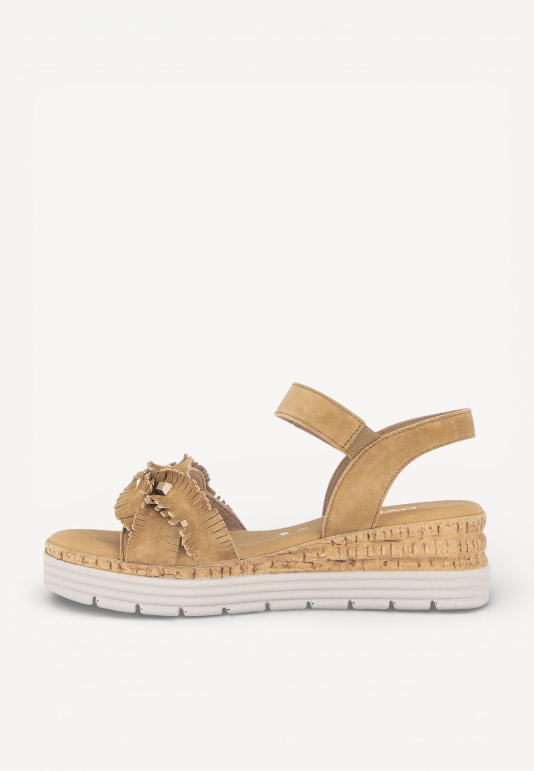 - Subtiele hakverhoging met kurklook-zool voor een zomerse uitstraling