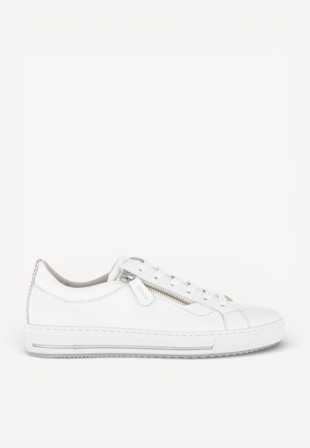 De Gabor 26.518.50 sneaker is een stijlvol en comfortabel. Deze schoen heeft een zilveren randje op de zool en meerdere gekleurde accenten op de hiel. Door de rits aan de buitenkant kunt u ze gemakkelijk aan- en uittrekken. Het stevige leren voetbed zorgt voor een goede steun. Ook als u steunzolen heeft kunt u deze sneakers dragen door het uitneembare voetbed.