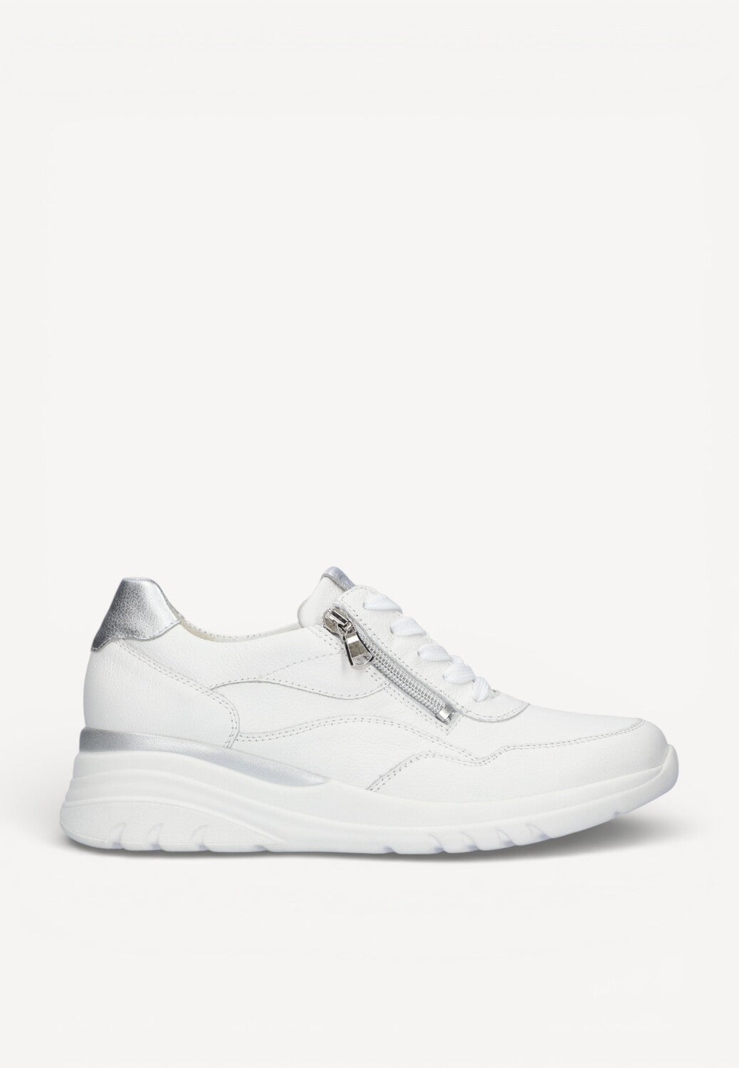 - Gemaakt van soepel leer in helder wit, aangevuld met zachte zilverkleurige details voor een moderne uitstraling.