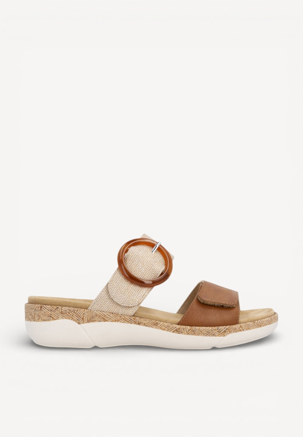 - De moderne gesp, de geweven band en de lichte zool geven deze slipper een stijlvolle en luchtige uitstraling